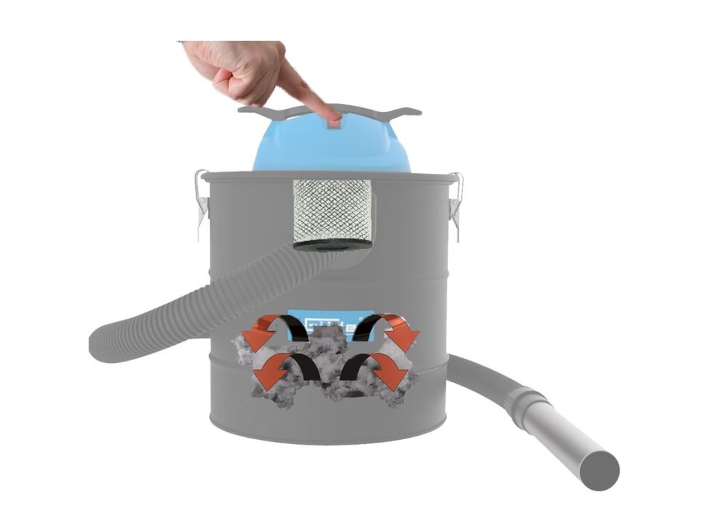 Vysavač popela GÜDE s funkcí SELF CLEAN dokáže přímo na místě po vysátí sám vyčistit vestavný filtr.