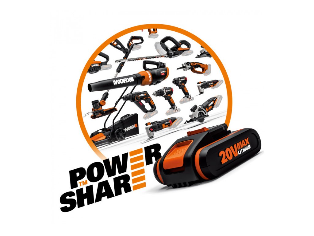 Funkce PowerShare „One Battery, Upgrade Power“ znamená, že stejnou 20V baterii lze použít ve více konfiguracích pro napájení 40V a 80V produktů