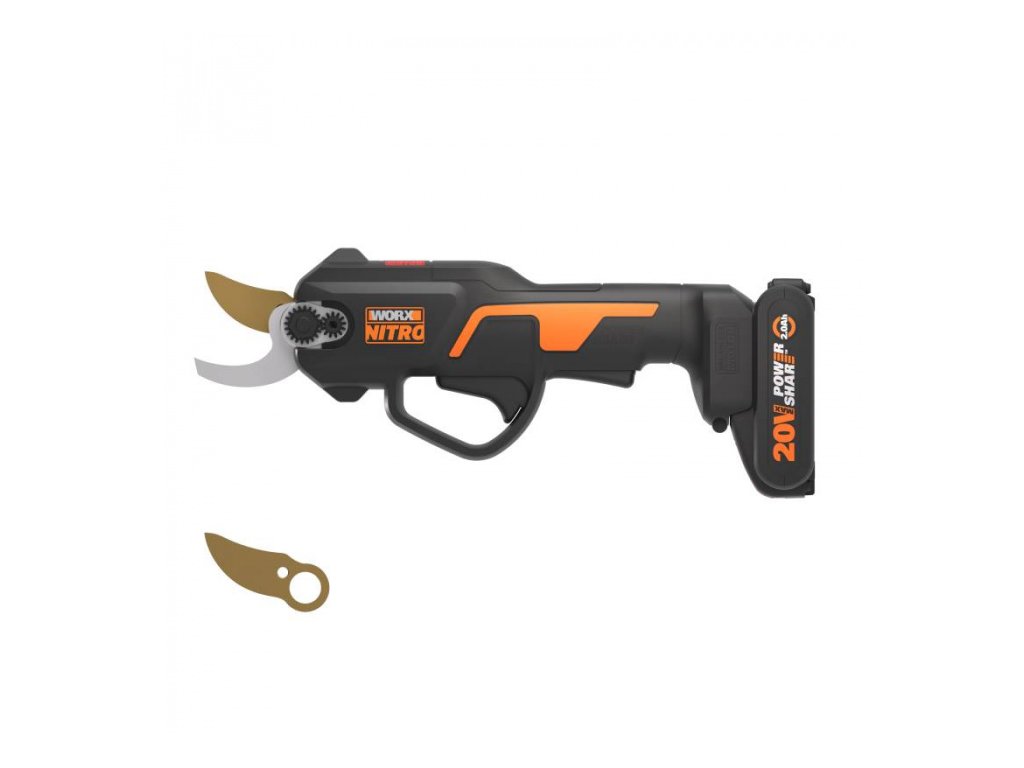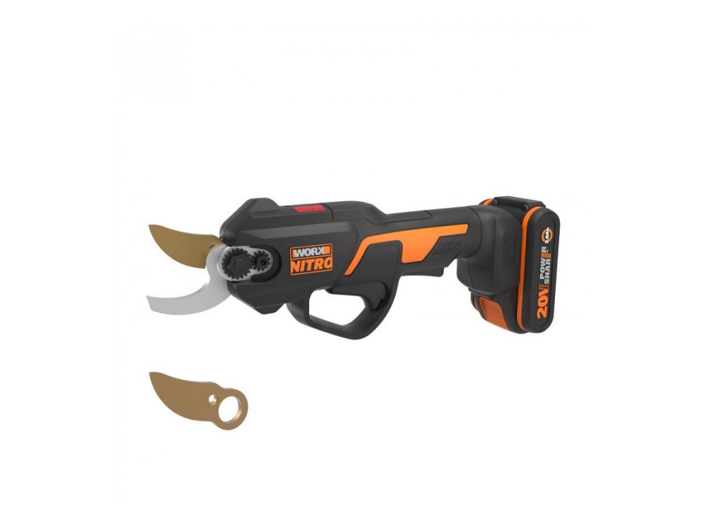 WG330E - Aku nůžky na větve 20V NITRO 1x2Ah - Powershare. Stříhání vašich stromů a keřů ještě nikdy nebylo tak snadné! S rozevřením čepelí o velikosti 25 mm dokážou nůžky Worx WG330E stříhat široké spektrum větví o tloušťce až 25 mm – dokonalé, pro nenáročné využití ve vašem ovocném sadu a na zahradě.