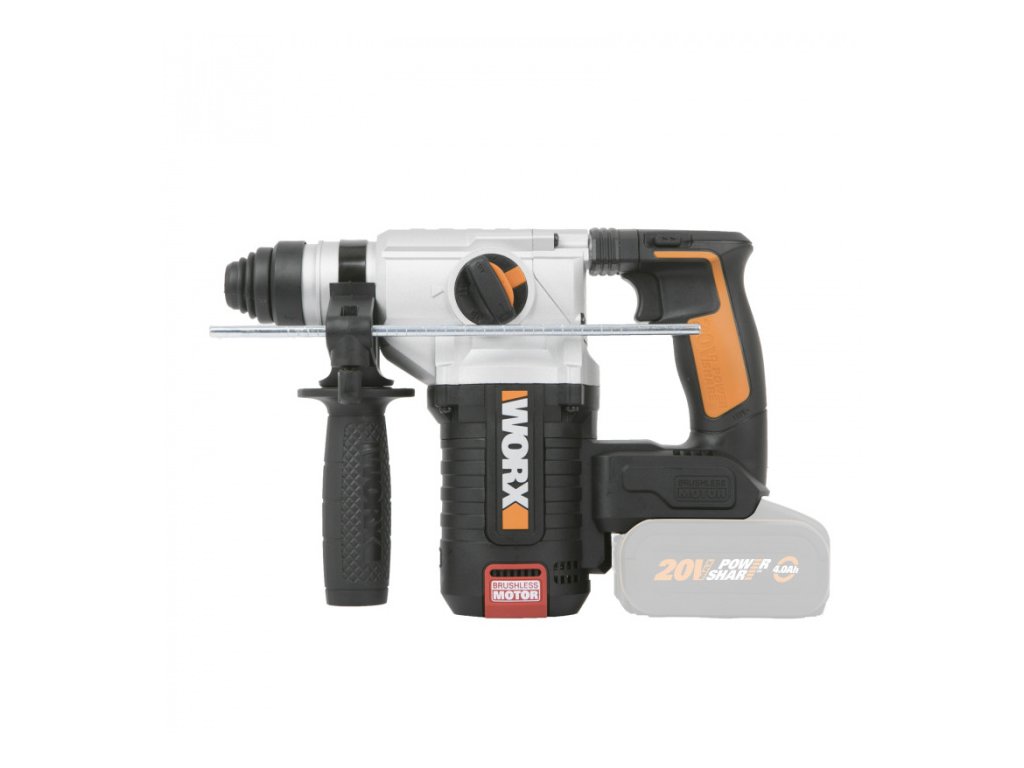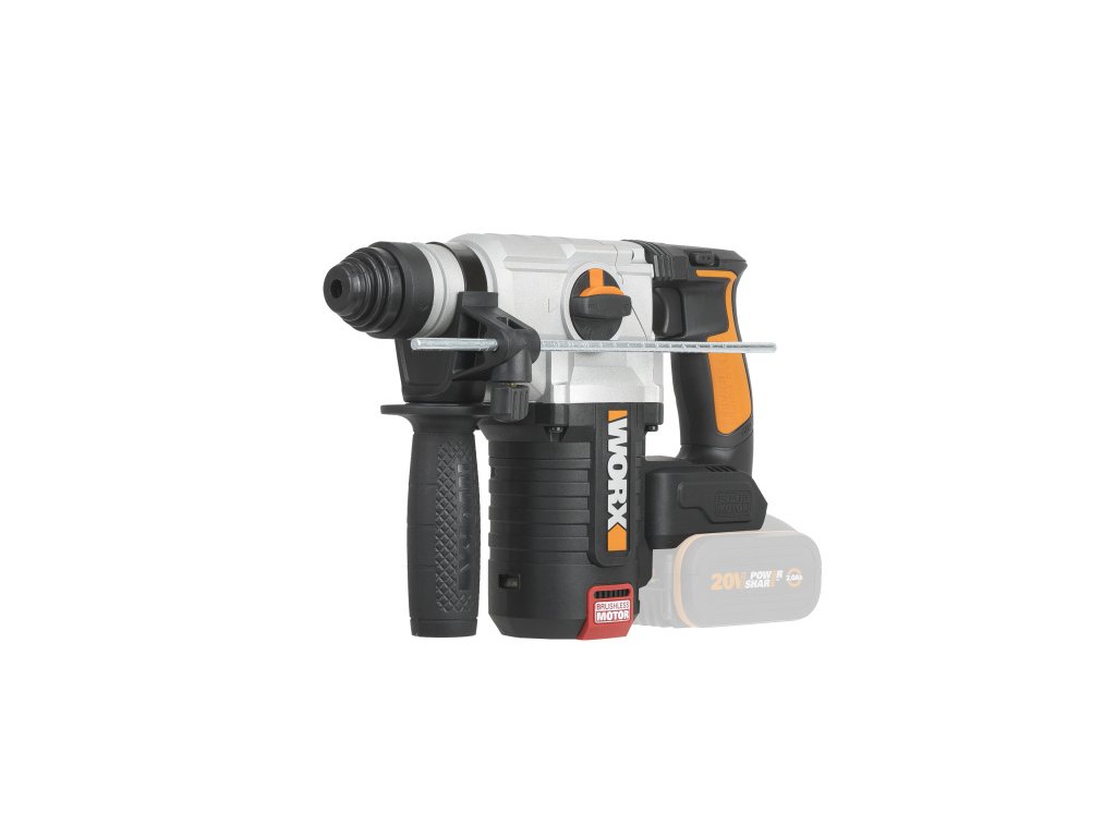 WX380.9 - Aku vrtací kladivo 20V NITRO 2,2J - bez akumulátoru - Powershare Lehká konstrukce bez kabelů poskytuje větší pohodlí při vrtání nad hlavou a pro bezproblémovou práci na svislých i vodorovných plochách .Výkonné vrtací kladivo je ideálním nářadím pro vrtání do betonu, dřeva a kovu. Je vybaveno bezuhlíkovým motorem a nabízí vyšší výkon a delší dobu chodu na jedno nabití akumulátoru.