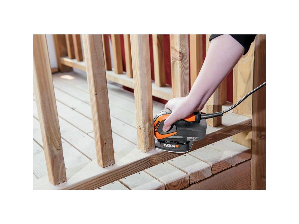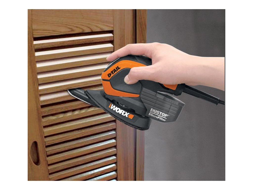 WX648 - Rohová delta bruska je Jednoruční vibrační bruska , která je určena pro malé plochy a koutové broušení dřevěných materiálů, kovů, plastů, tmelů a laků. Dobře poslouží v obtížně přístupných místech jako např. broušení v rozích oken, broušení oblých povrchů a menších ploch