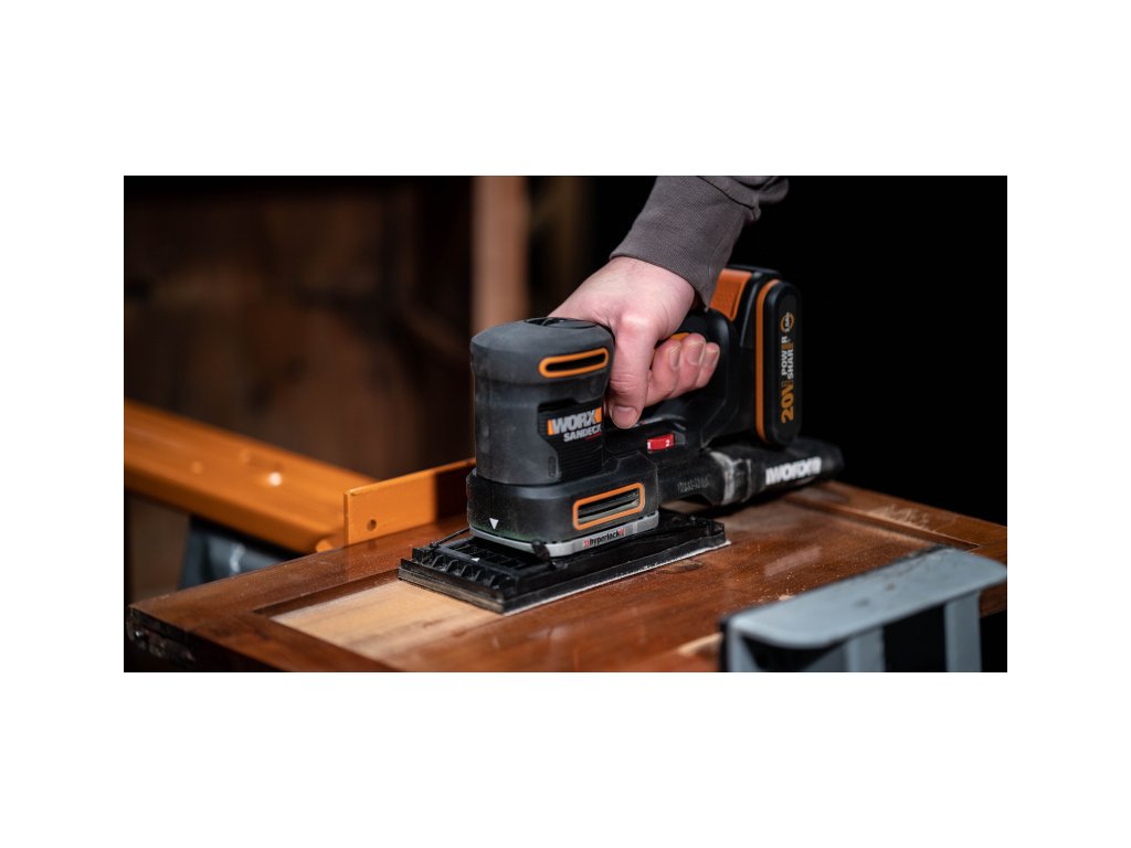 WX820 - Aku multifunkční bruska je ideálním nástrojem pro broušení menších i větších ploch. Díky vynikajícímu vyvážení s těžištěm v blízkosti obrobku a dobré ergonomii je tato bruska spolehlivá a přesná. 5 vyměnitelné brusné desky nabízí vysokou variabilitu a intuitivní ovládání přizpůsobitelné aplikaci a broušenému materiálu. Určeno pro broušení různých typů povrchů – včetně těch s omezenou dostupností a zaoblených. Bruska je vybavena beznástrojovým systémem upevnění brusných desek, velkým poloměrem oběžné dráhy a regulací otáček za účelem jejího přizpůsobení typu obráběného materiálu.