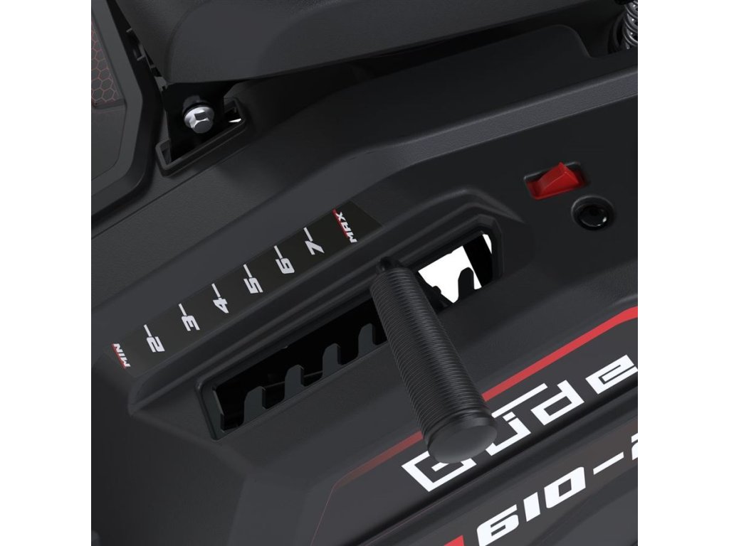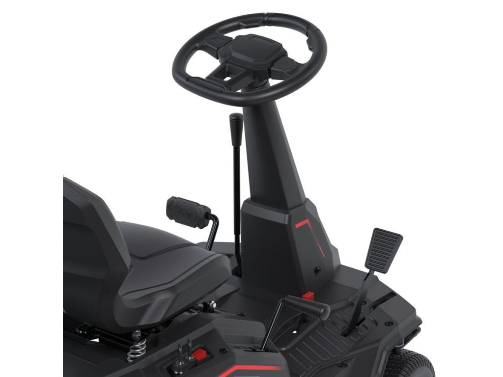 Masivní ocelové žací ústrojí, osmistupňové nastavení výšky sečení a velká kola s pneumatikami zajišťují pohodlnou práci v nejrůznějších podmínkách.