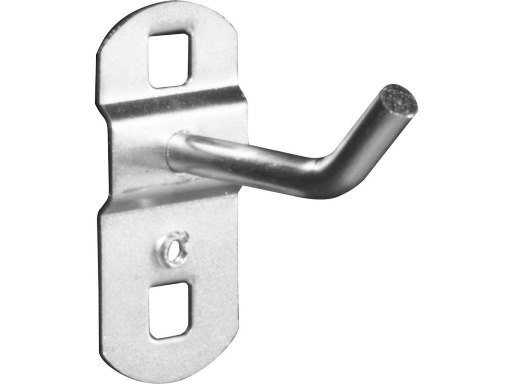 Hák se šikmým zakončením, kompatibilní s dílenskými závěsnými systémy, které využívají čtvercové děrování 10 mm2