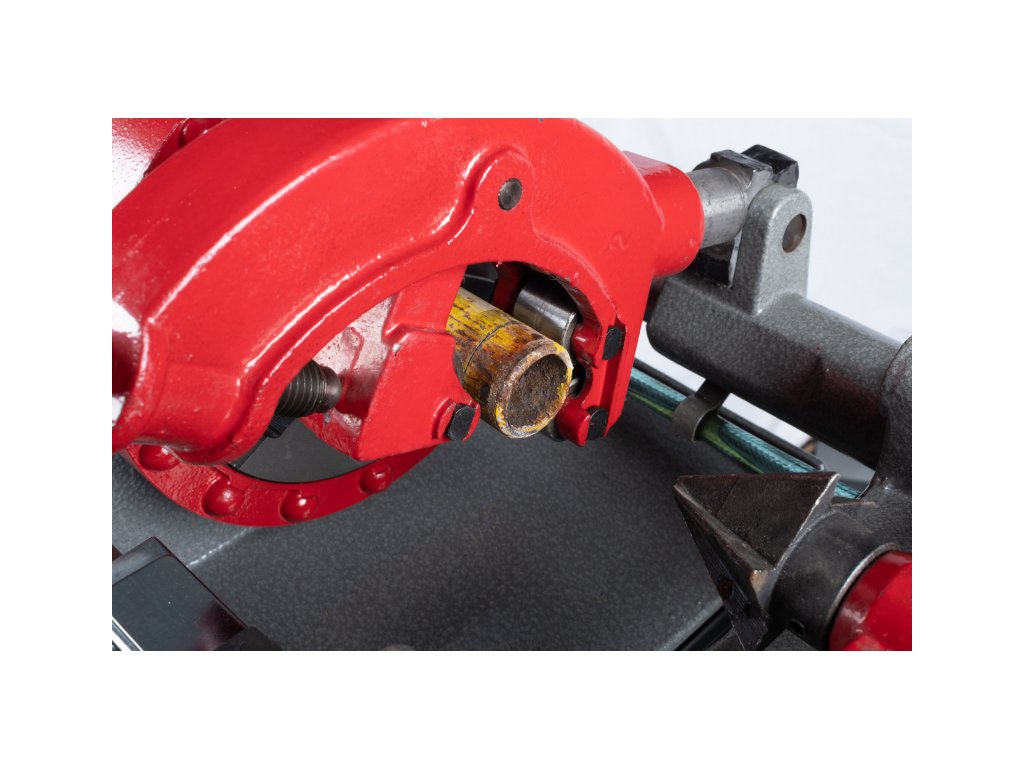 materiálu. Konstrukci stroje doplňuje pevný otočný hrot pro stržení vnitřní strany trubky.