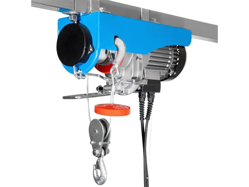 Konstrukce: rám zvedáku z ocelového plechu, blok motoru a převodová skříň z hliníkového tlakového odlitku, 12 m ocelové lano (→ průměr: 3,8 mm), závěsný hák s bezpečnostní pojistkou.